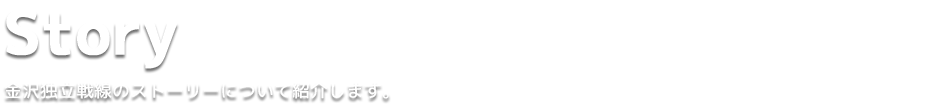 現在の金沢独立軍の攻略対象は石川県庁である。国道8号線を挟んでにらみ合う両軍。50メートル道路、犀川、大豆田グラウンド、金石港など金沢を舞台で戦いが繰り広げられている。